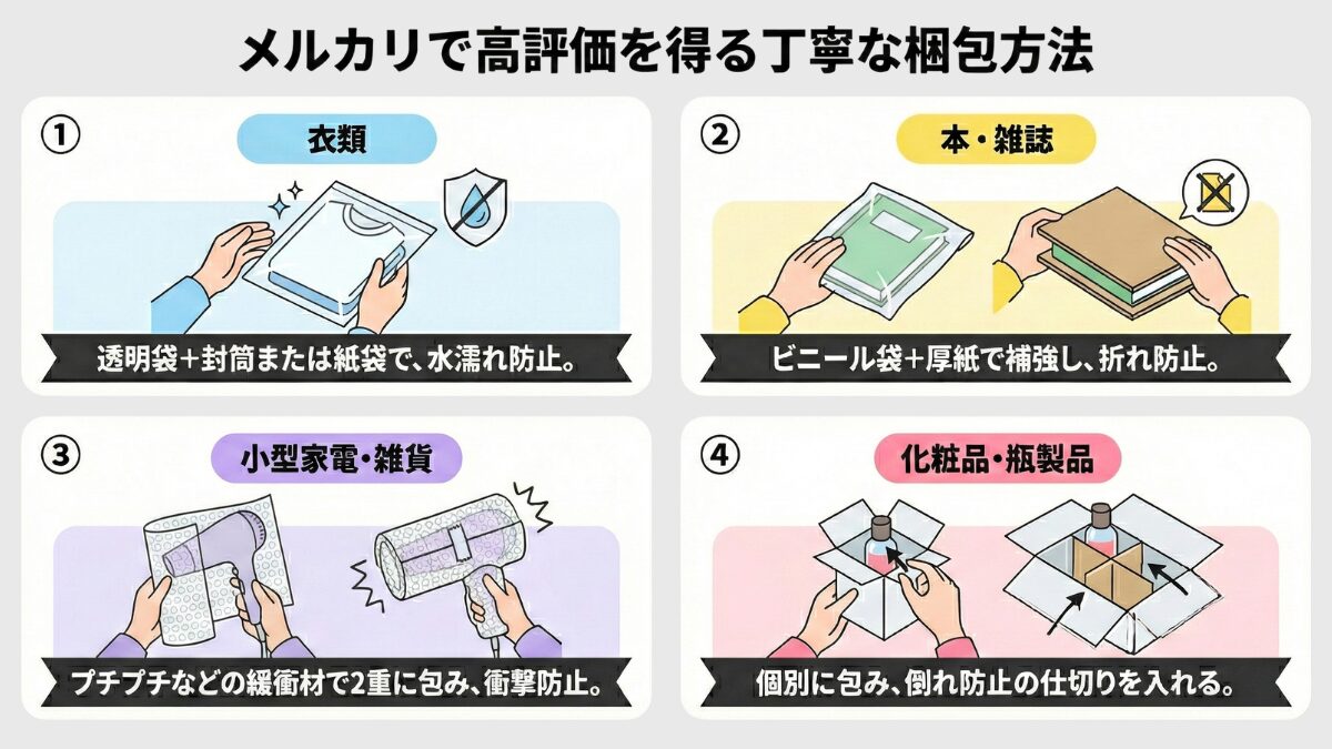 梱包の丁寧さは購入者が受け取ったときの第一印象を左右し、取引の満足度に直結します。